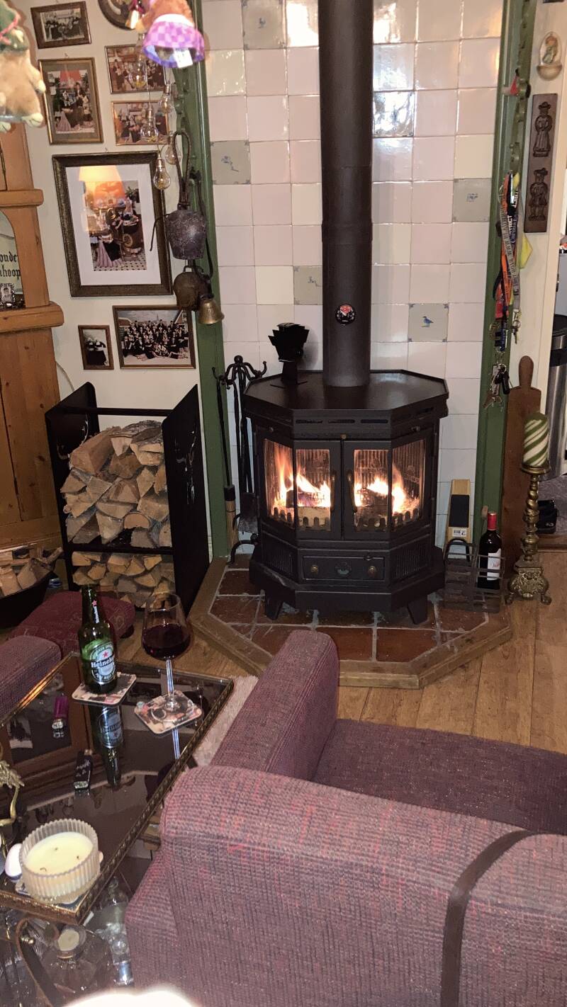 Postawiony przy kominku utrzymuje porządek a drewno jest w zasięgu ręki.